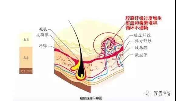 简单而言创伤如果深入到真皮层皮肤就会形成强韧的疤痕组织将伤口有效的连接起来,形成疤痕,,疤痕的本质是一种不具备正常皮肤组织结构及生理功能的,失去正常组织活力的、异常的、不健全的组织。